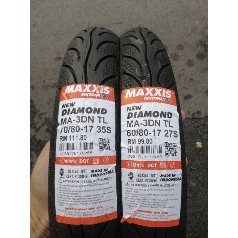 Maxxis Diamond Ma 3dn 60 80 17 70 80 17 Tubeless Tyre Motorcycle Tayar Motosikal Nak Murah Ambil Viva Shopee Malaysia
